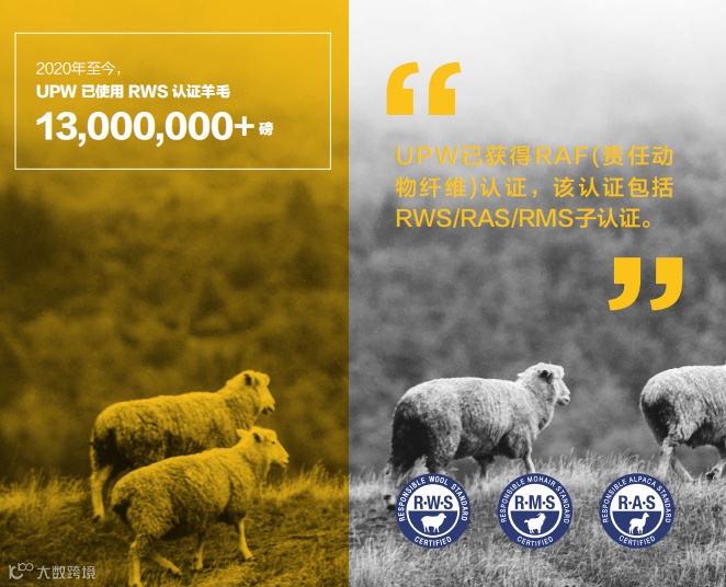 从2021年开始,UPW已100%全面使用支持为羊毛产业提供最好工具的RWS认证羊毛,UPW还坚持使用来自世界各地的羊毛原料以确保羊毛的可持续来源,只为千万只绵羊谋求动物福利!此外,UPW还与NATIVA™达成了合作,用户的每一笔交易均可通过NATIVA™区块链平台进行记录,用户可从中看到UPW传达的可持续价值,从而进一步履行UPW的透明度承诺。