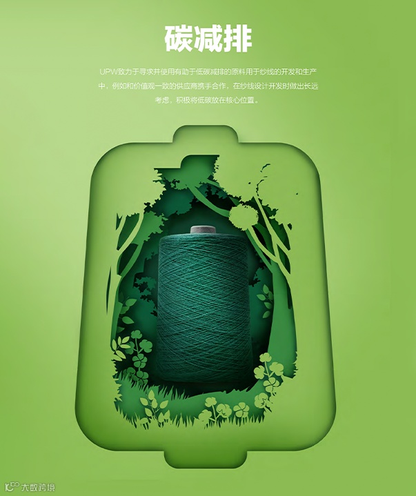 UPW致力于寻找并使用有助于低碳减排的原料,并在纱线设计开发中将低碳放在核心位置。UPW自2014年在行业内率先使用天然气起,便在绿色“碳”索道路上不断开拓创新,在废弃处理、碳足迹认证上均有傲人成绩,这些举措,无不显示着UPW对可持续近乎痴狂的坚守和执着。