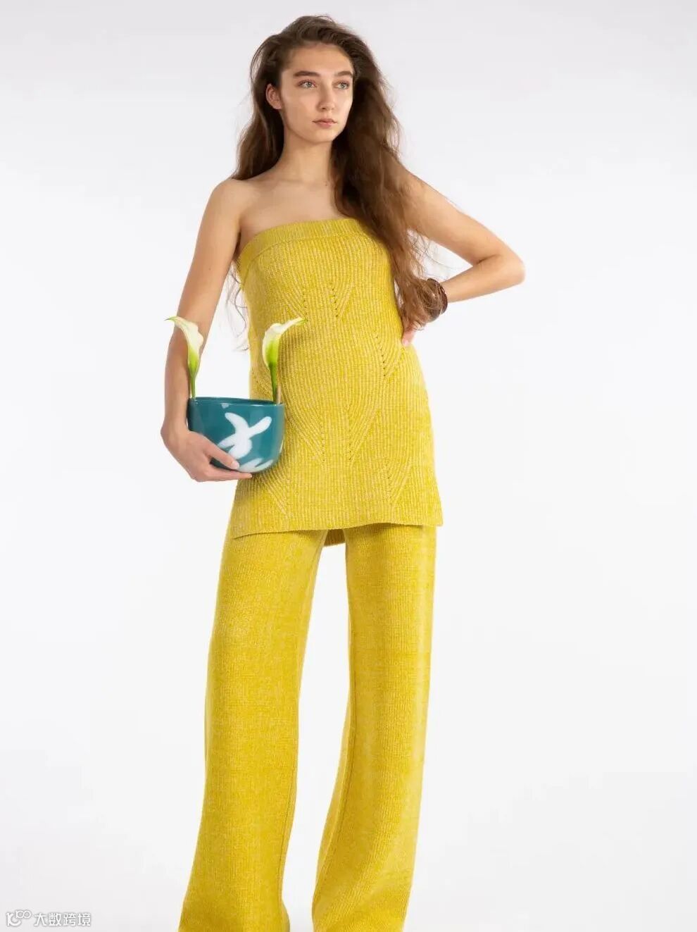 极简大方的基础款织物,是对身体姿态的无限包容。或伸展,或蜷缩,或绷直,或弯曲,每一次的肢体动作变化,都是在传递身体和内心能量状态的讯号。当被轻柔包裹在针织套装或针织连身裙宽大的廓形中时,直触皮肤肌理的绵软肌理,丈量身体舒展的尺度,织物处理上的细微变化和自然质感,会让身体不自觉清空一些杂念和压力,宛如恍然停摆的钟,让时间流速放缓,空间隔阂不再,心理防线瓦解,在低密度的慢时间、轻生活里,与自己的身体来场1V1的坦白局。