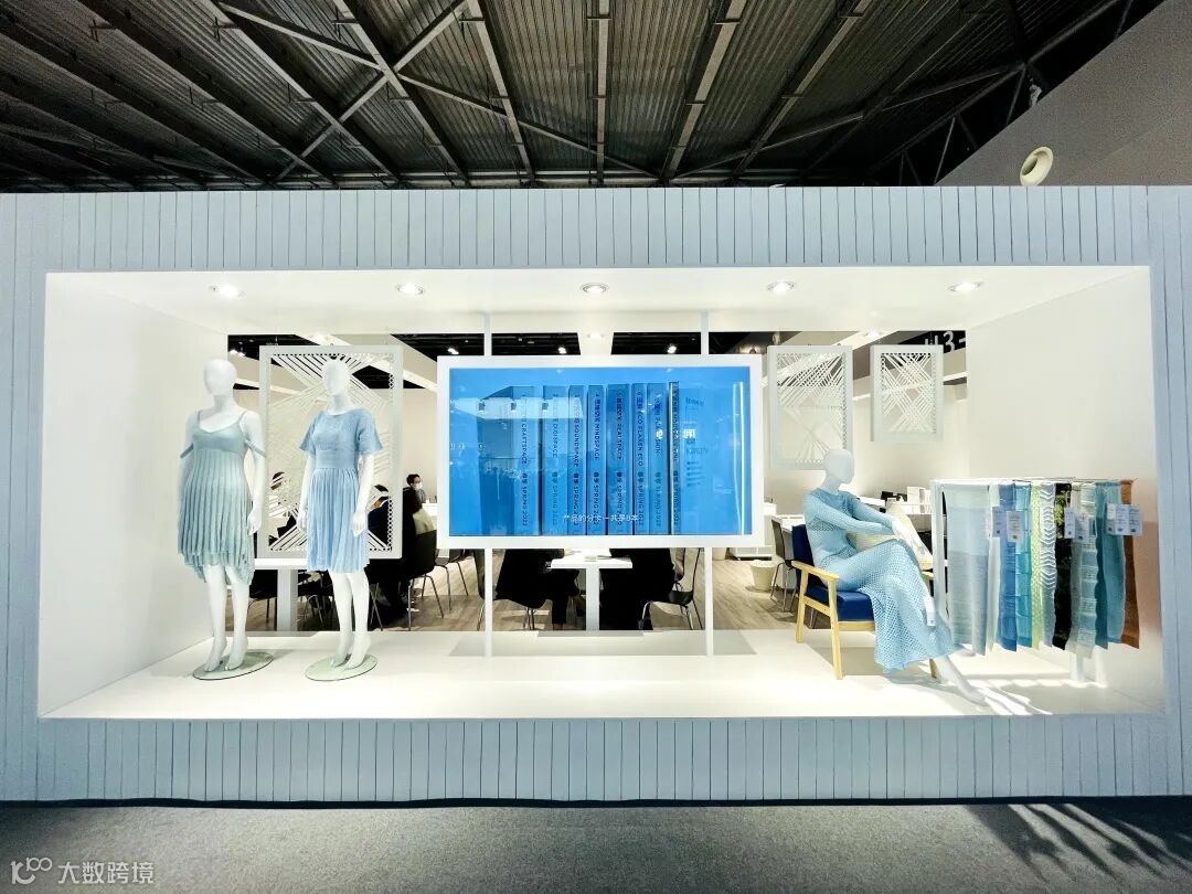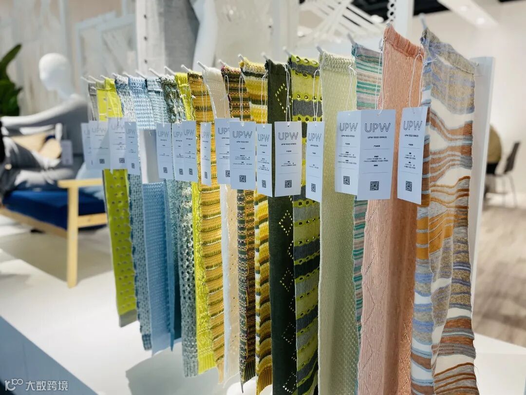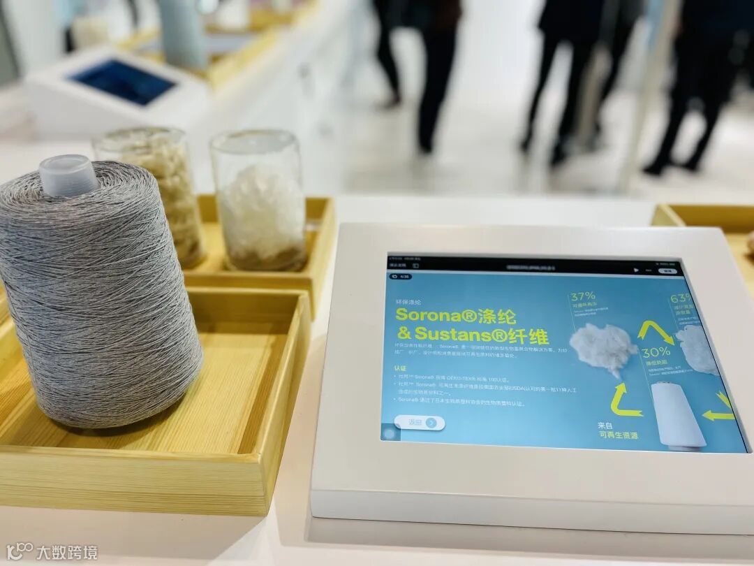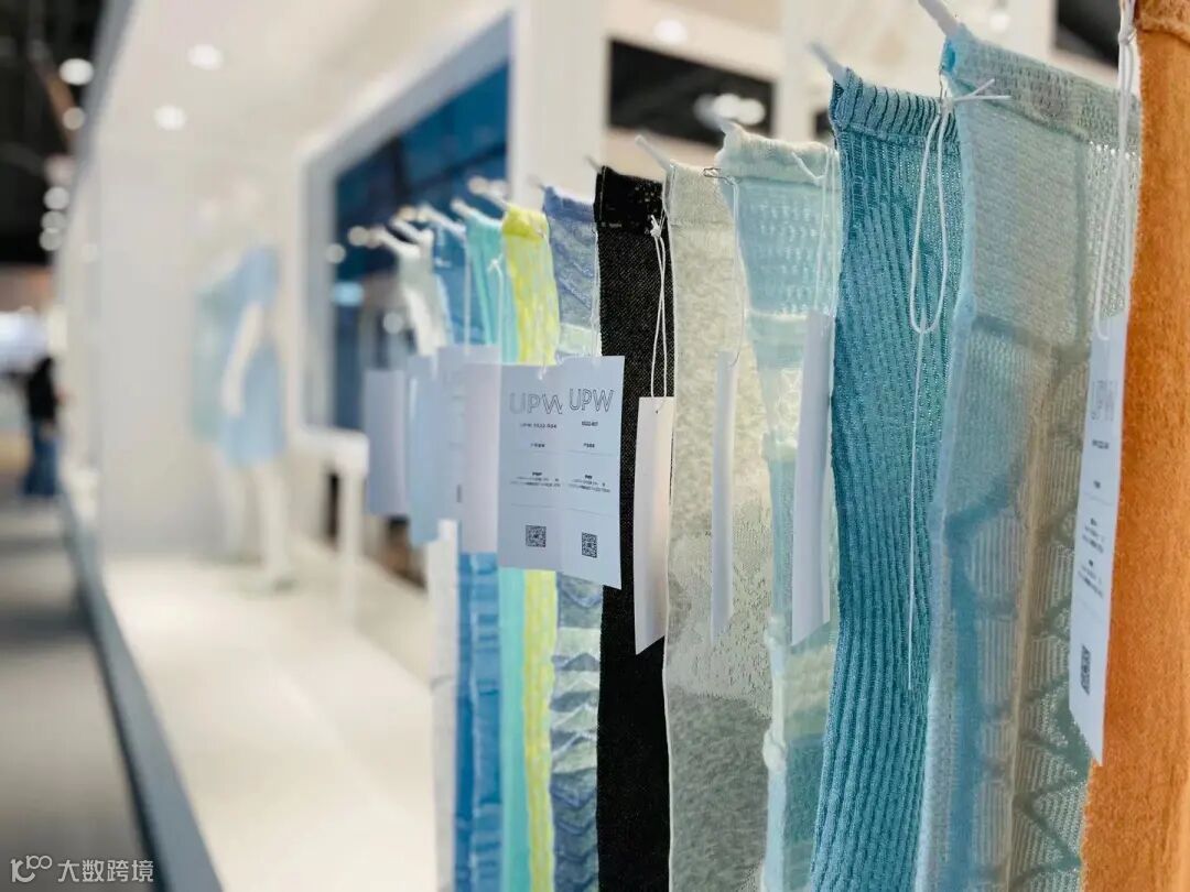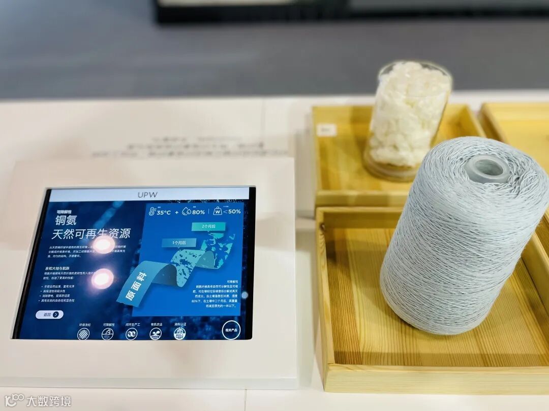 通过iPad等电子设备延展说明与纱线布片实物展示的交互呈现,便于专业观众自助了解产品信息,感知UPW开发ECO系列的设计考量及对时尚发展可持续的责任使命。