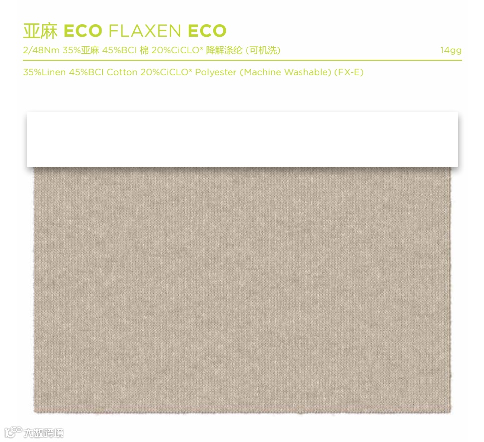 UPW关注海洋生态稳定,在2022春季系列中投入使用CiCLO®纤维,推出绿态B-ECO、绿环B-ECO CHAIN、亚麻ECO FLAXEN ECO、链麻ECO FLAXEN ECO CHAIN、罗幔伊GAZE、斯帕戈SPAGO、洛克塔LOKTA等ECO纱线,在改善环境影响的同时,仍保持高品质生产: