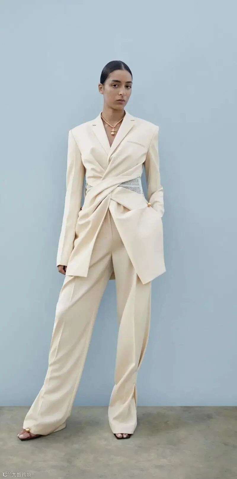 恰到好处的高腰西装简约前卫,将腰部以下的视觉空间无限延伸。