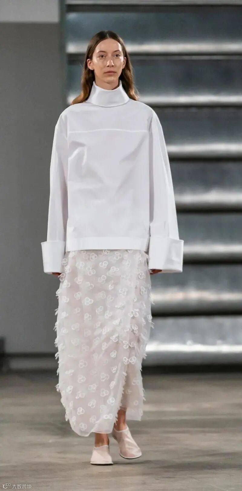 延伸沉淀的飒气与洒脱,一步一趋之间,细长的面料覆盖,构筑出落落大方的职场步调。