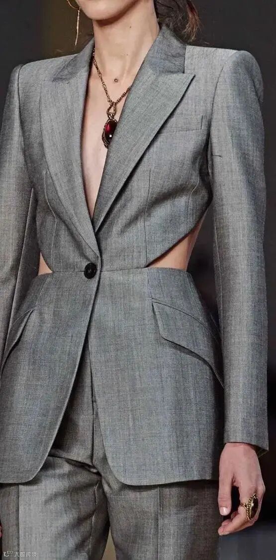 镂空的结构设计打破西装板正的沉闷感,适当的露肤看似矛盾偏激,又不失平衡雌雄荷尔蒙的奇妙美感。