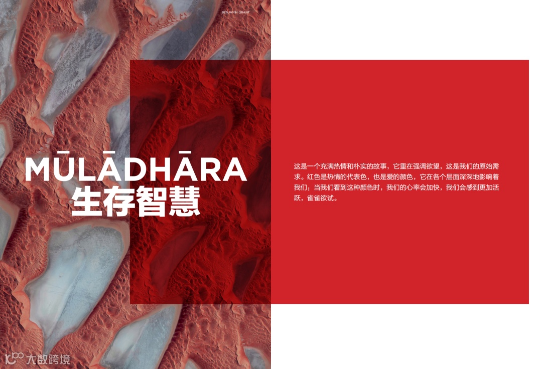 在繁琐别扭的当下,作为一个能够改善情绪的工具,色彩发挥着自身的独特魅力,为生活带来些许幸福。本季,UPW便受到了颜色疗愈特性的启发,创作了生存智慧、跃动灵性、仁爱疗愈、冥想空间、自觉灵量五个美丽的故事。名字均出自《吠陀经》的五个色彩故事,以各自的色彩疗愈特征抚慰着逐渐缺失安全感的世界,为创作者们提供了源源不断的设计思路。