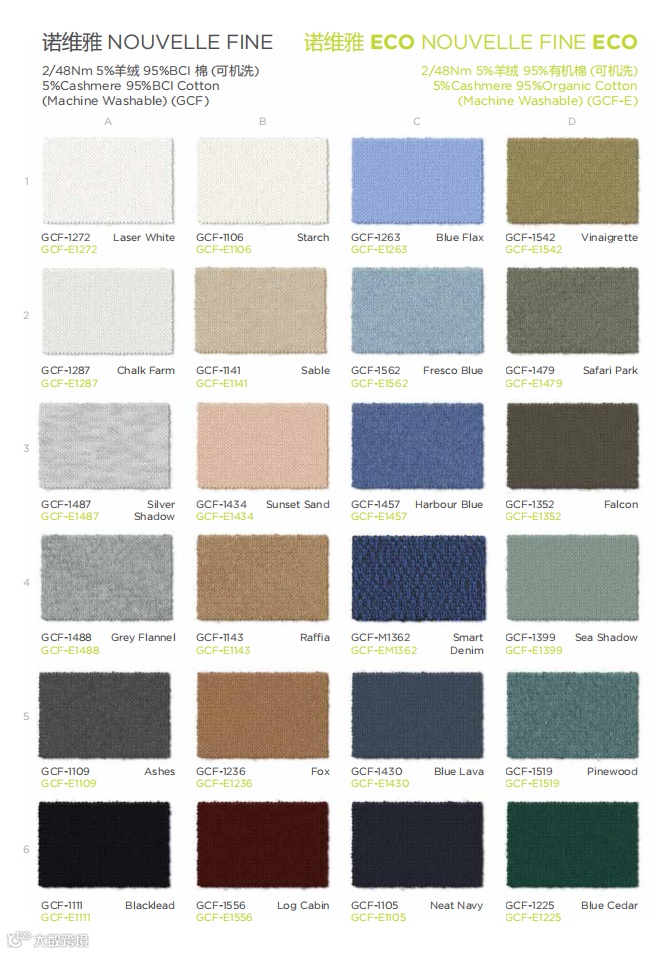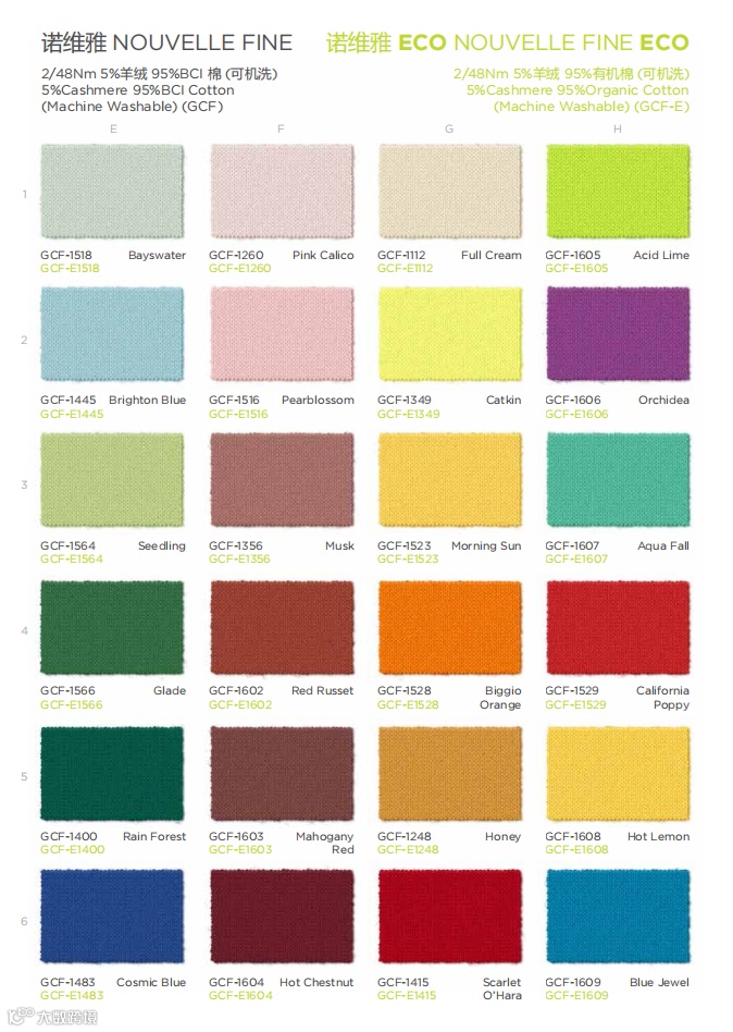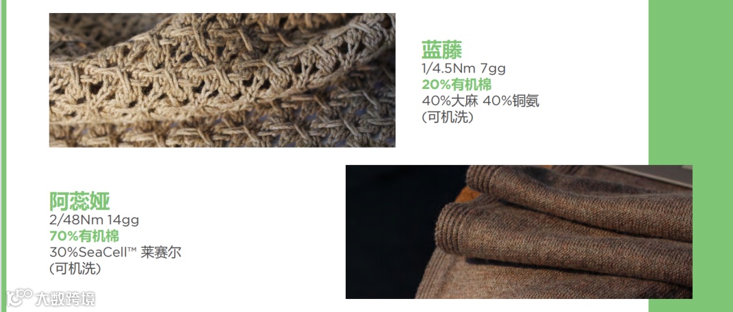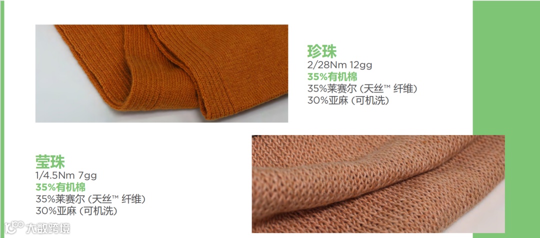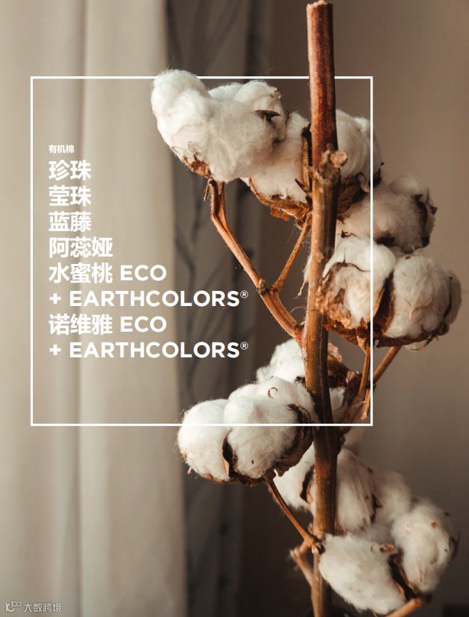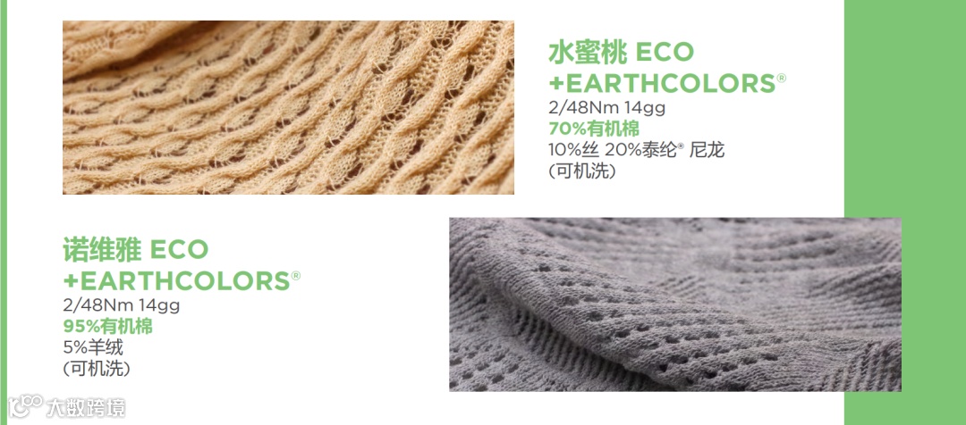 有机棉系列包括产品珍珠、莹珠、蓝藤、阿蕊娅、水蜜桃EarthColors®以及获得GOTS认证的诺维雅 ECO EarthColors®等,保证从引入、使用到排放的全程环保,既延续了有机天然纤维的性能特质,也不断迭代更新出全新的视觉呈现。