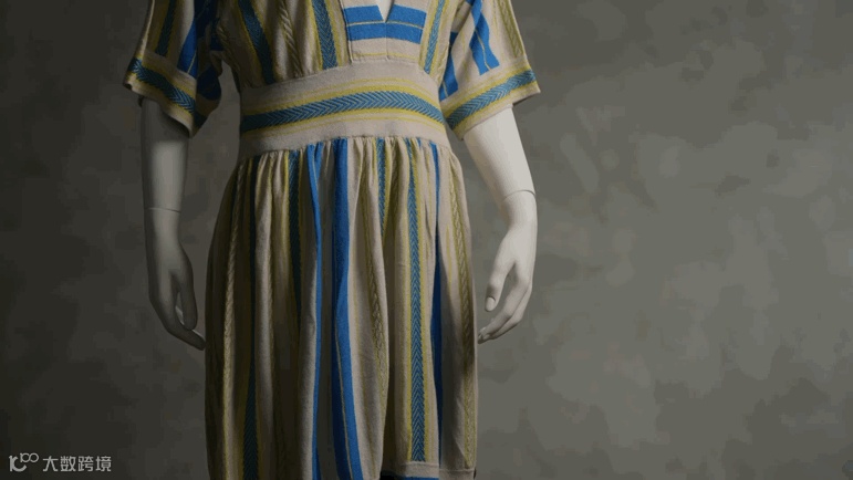 米杏奶油底色的拨花条纹连衣裙,穿插着缤纷明亮的狭长色带,营造春季轻松自在的度假休闲感。由于水蜜桃系列纱线纱支较细,成衣也兼具了垂坠丝滑、纹路清晰的细腻感。
