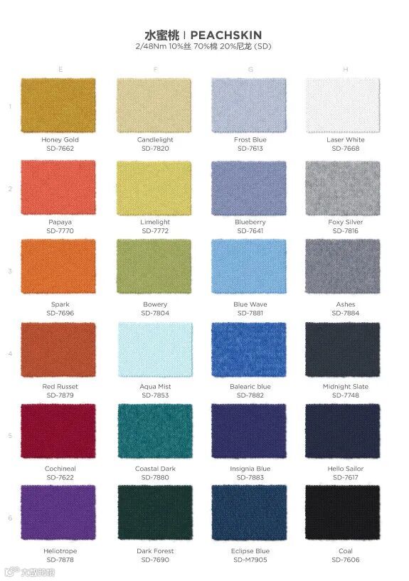 新水蜜桃ECO EARTHCOLORS®系列使用Archroma新型合成染料专利技术,色调从100%天然的废弃食物原料中提取,染色工艺对环境非常友好,保证从引入、使用到排放的全程环保,为该系列加入更多可持续元素,也以天然纯粹的染色工艺不断迭代更新贴近自然的视觉呈现。