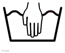 一只手表示“需要手洗,不过度揉搓,默认水温最高为40°C”