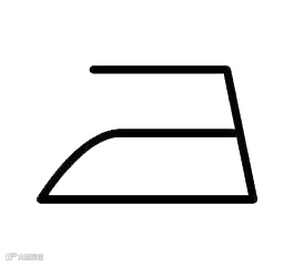 简化的熨斗线条形状,是衣物水洗标上代表“可家庭熨烫”的符号。
