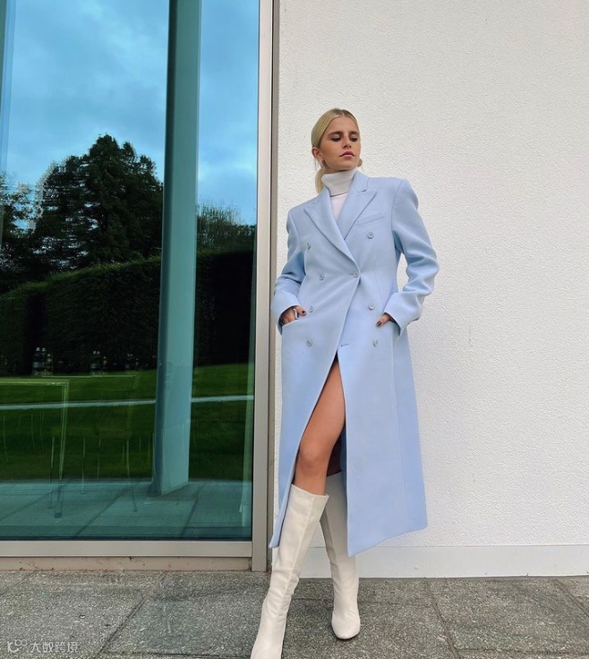 ● 加入了些许灰色质感,让单纯的baby blue成为更成熟、更中性、更好驾驭的蓝。晴空蓝在日常造型的各种单品里都显得十分友好,尤其在被运用于视觉量感同样轻盈、膨胀的材质及单品时,会产生温暖又清凉的奇妙化学反应。
