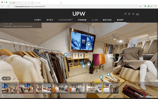作为纱线行业领军者,UPW重视科技、坚持创新,更新迭代自身,秉承着以客户为先,更好服务客户的宗旨,着眼于可持续发展和数字化,经过长达一年时间的精心筹备,于今年7月份,在香港总部设立Virtual Showroom虚拟展厅,打破时空限制,让因疫情影响无法直接接触产品的广大行业用户,足不出户即可身临其境多维度观看,了解和获取UPW春季2022与秋冬2022最新两季的产品。话不多说,一起开启UPW的Virtual Showroom“虚拟”之旅吧!
