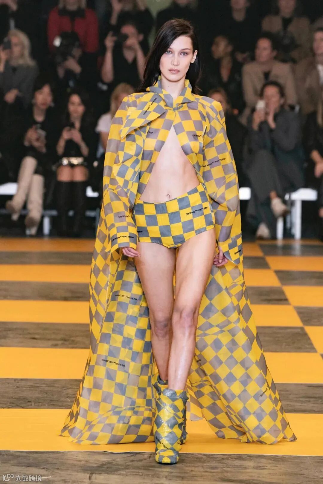 明亮黄的跳脱一面总有终极灰为底托着,终极灰的极尽沉稳也有明亮黄提着一股鲜活气儿,色彩之间的界限也恰到好处地让时装显现出更明确的清晰度。