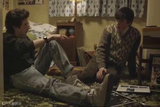 整部电影就是一场眼花缭乱的毛衣秀,女主蕾菲娜有着各种颜色的V领毛衣,搭配夸张复杂的chocker,可以让宽松而日常的毛衣造型显得时髦而讲究。另外乐队的全能乐手埃蒙时常用水洗牛仔搭配毛衣,酷酷的潮男范中又多了些温柔、稳重的气质。