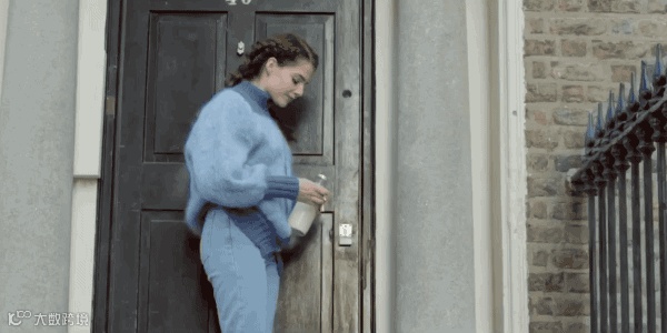 卸掉浓妆的蕾菲娜穿着湖水蓝的毛衣外套出现时,这部电影的C位毛衣出现了。它具备日常毛衣的亲和力与实穿度,用了两种蓝色和两种材质的纱线,优雅中又有一些俏皮的街头感。