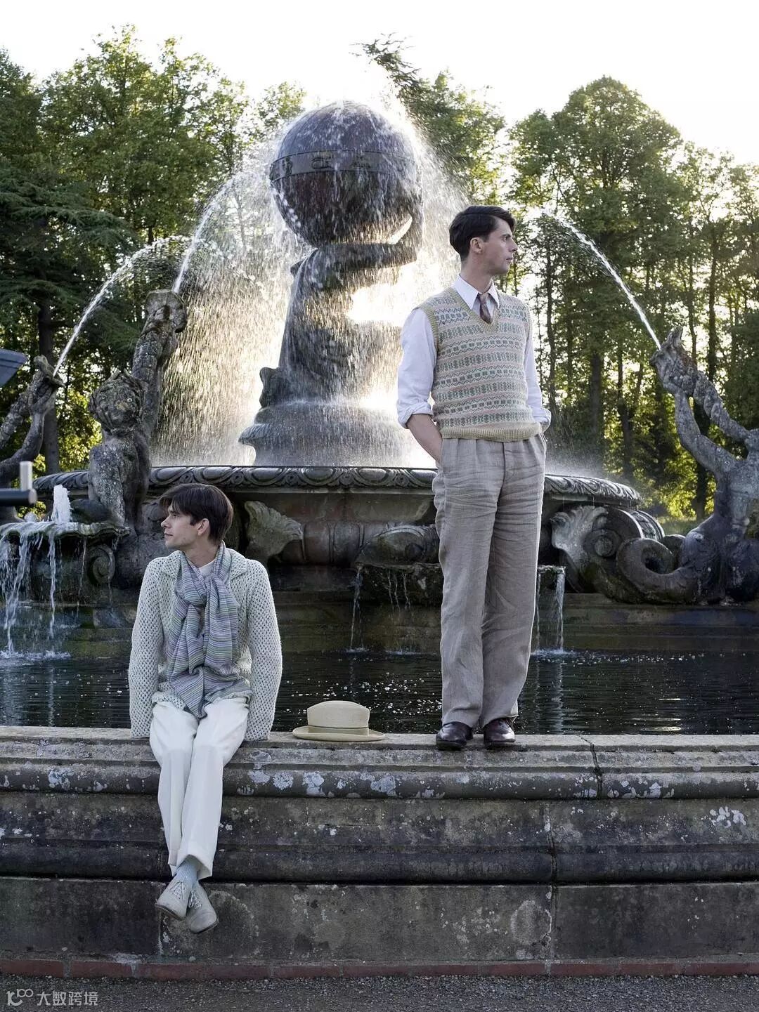 少年乔治身上的这件费尔岛毛衣(Fair Isle Sweater),瞬间把我们从深蓝色调的绝望海岸拉回到了橘色调的安全陆地。费尔南岛毛衣最初因“不爱江山爱美人”的温莎公爵而走红,毛衣的每行图案只使用两种颜色的纱线,并用特殊的浮线提花,编织成保暖的双层样式,也是最经典的英国毛衣之一。在相关的英国电影《故园风雨后》、《哈利波特》中亦有特写。