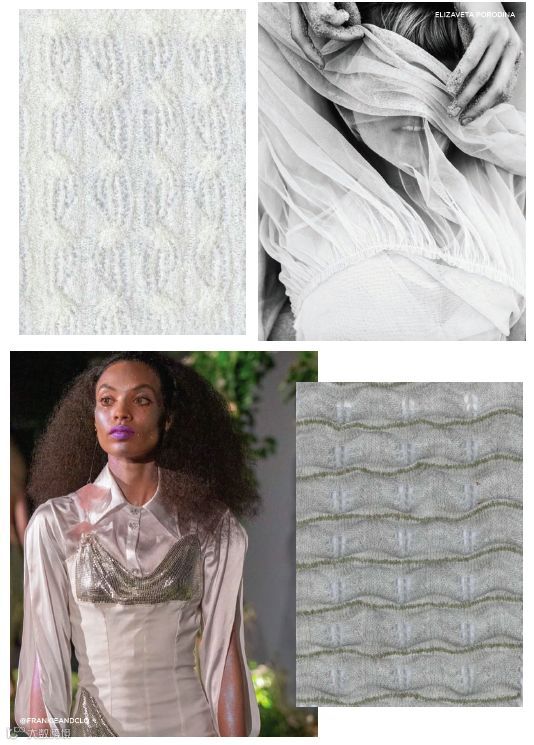 花釉纱线则因增加了涤纶金银线,平添了细微的金属感,提供了一种更具趣味性、更有光泽感的选择。清透的罗幔纱线,能为织物营造出层次丰富却不厚重的观感,适宜制作更具设计挑战性的服装,为创意提供更多可能。