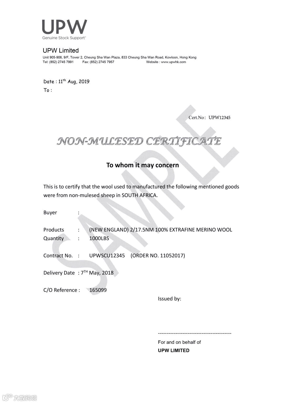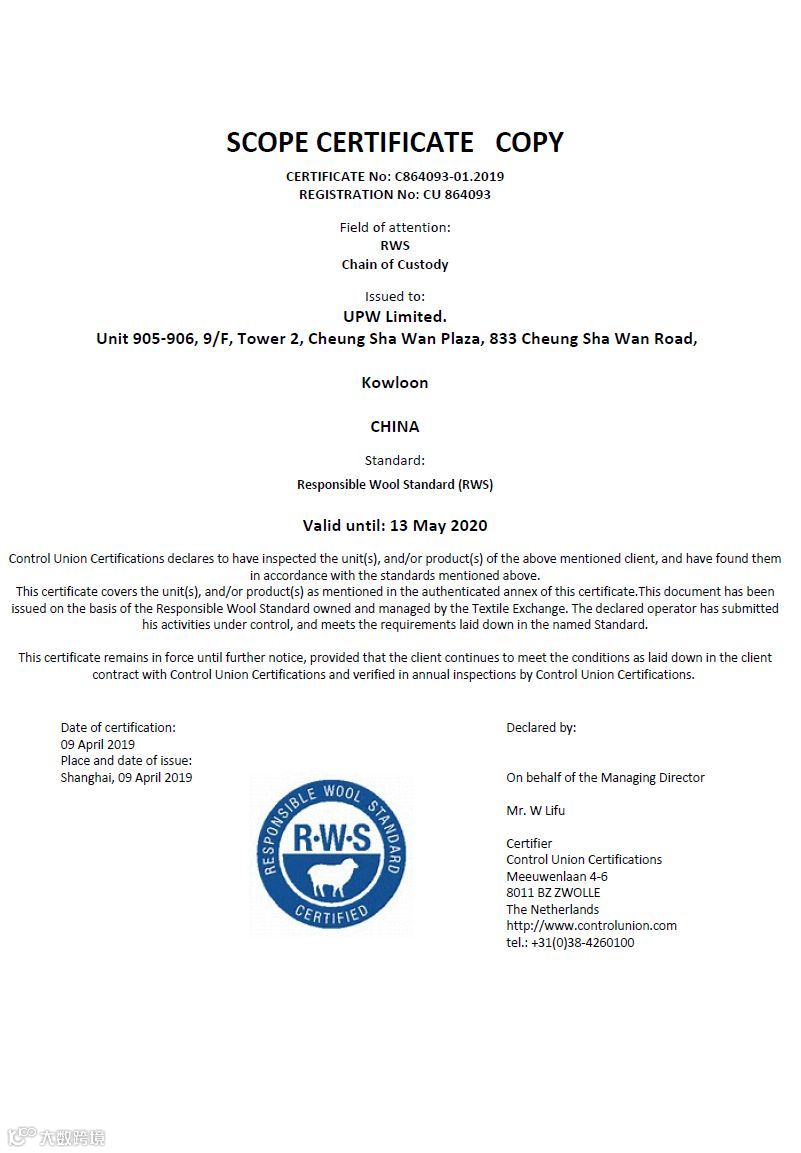 此外,UPW还获得了纯羊毛标志(Woolmark)吊牌,非虐羊毛证书以及RWS认证,其中UPW FW20经过RWS认证的纱线有:英格兰New England ,英格兰缤纷 New England Twill,英格兰流萤 New England Donegal,英格兰星光 New England Cable,雅致 Refine,幻景 Mirage Fine,幻影 Mirage,荣耀 Glory,希尔林 Shearling。