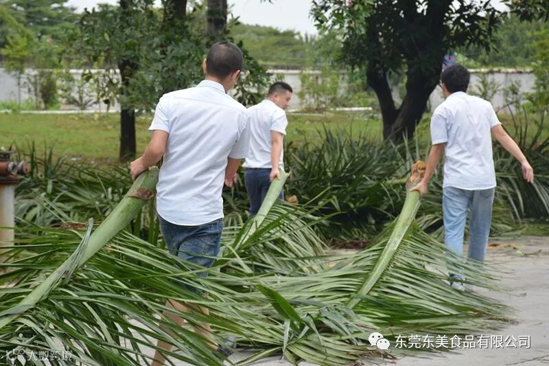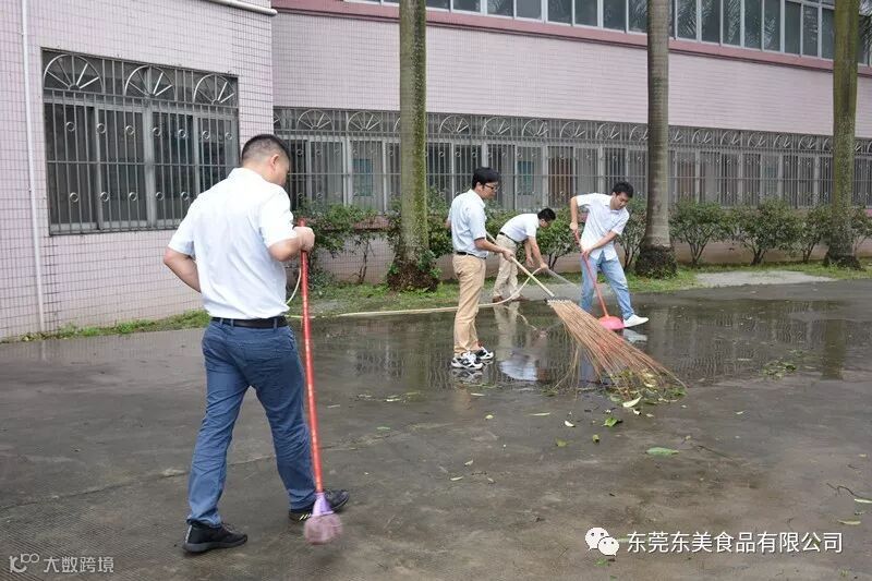 东美员工积极弘扬抗击“山竹”的团结一致的精神,齐心协力清扫路面,装运垃圾。在打扫的过程中,不畏脏乱,不畏苦累,一心想着尽早清理干净,迅速恢复干净整洁的厂区环境。