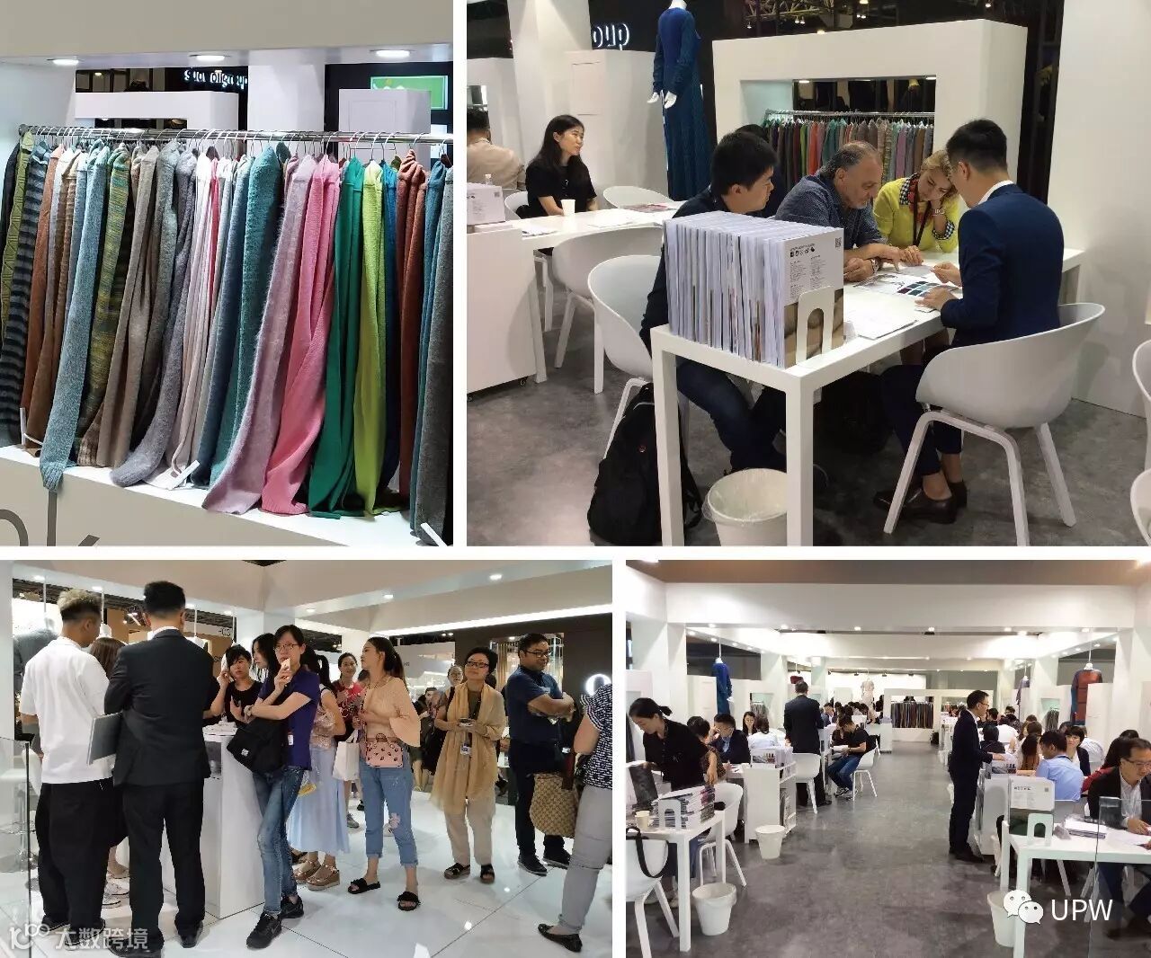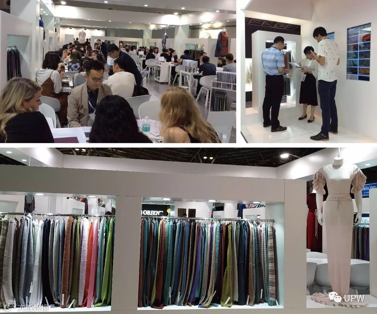 UPW可为您专属定制您期望的手感效果,宾客们经过我们设计师和销售精英的热情讲解都被我们的产品深深折服、赞口不绝。展位上的样衣和样片更是吸引宾客的眼球,经过的人们都纷纷驻足观赏。