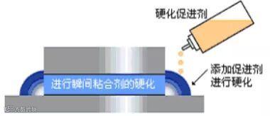 在粘合溢出部分滴上硬化促进剂,加速硬化。溢出部分硬化速度加快,可避免与空气中的水分发生反应,从而避免白化现象。