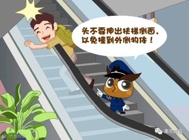 离开时 要顺梯级运动之势抬脚迅速迈出,跨过梳齿板落脚于前沿板上,以防绊倒或鞋子被夹住。