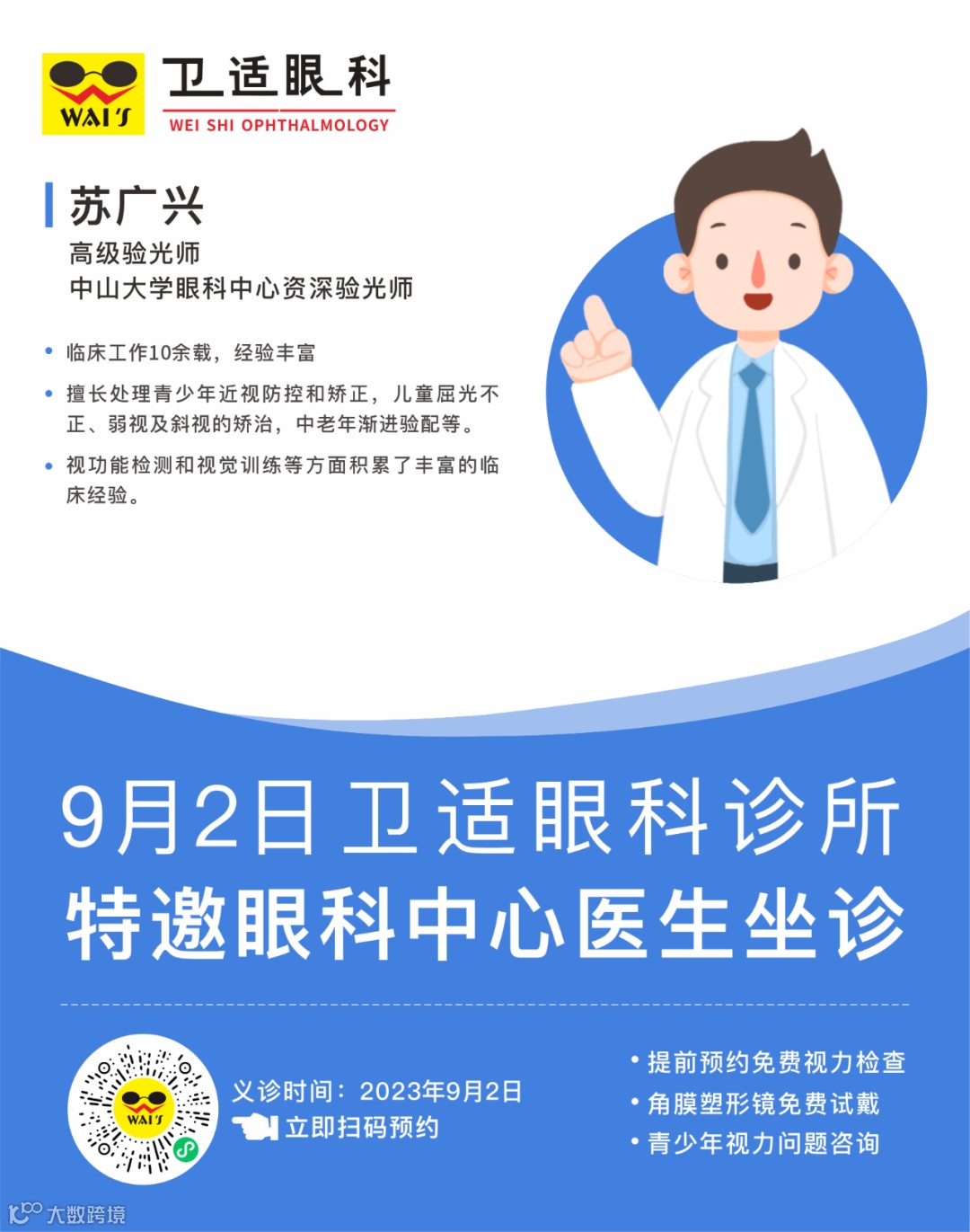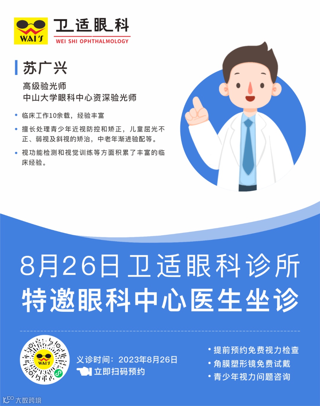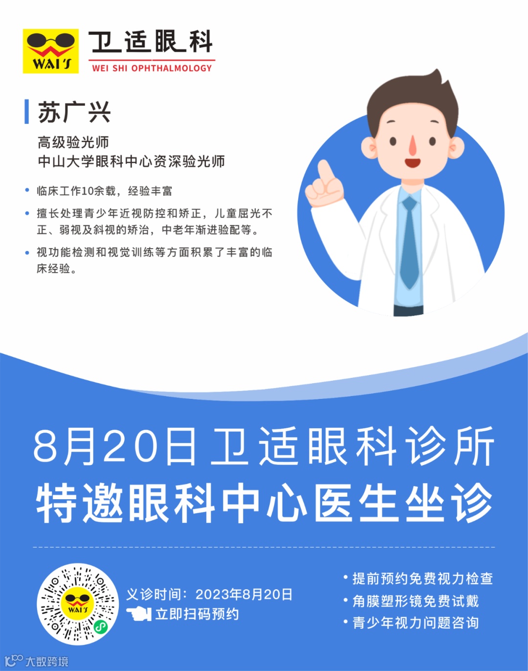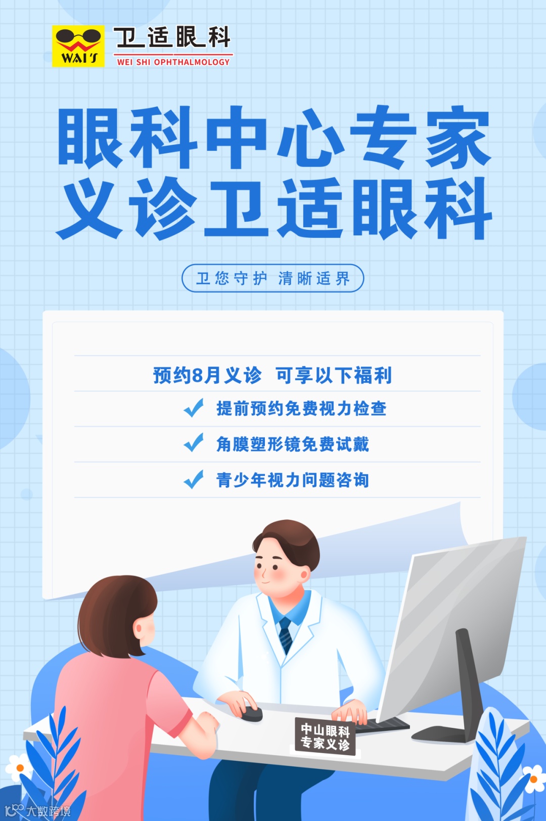 暑期过半,您家孩子的视力还好吗?视力复查了吗?为了方便广大市民朋友,卫适眼科特邀眼科中心专家坐诊,8月份每周末都有,就在家门口,赶紧约起来吧~