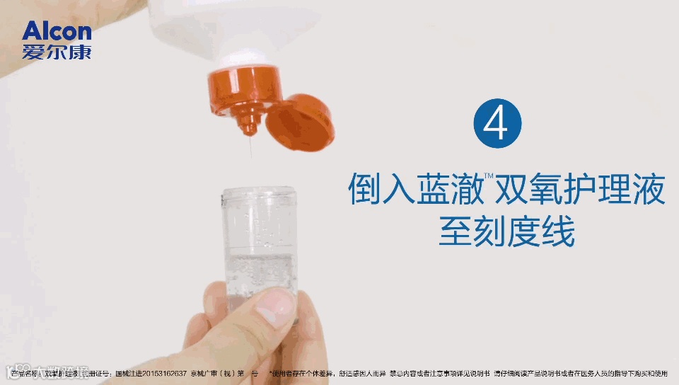 在配套镜盒中倒入蓝澈双氧水至刻度线