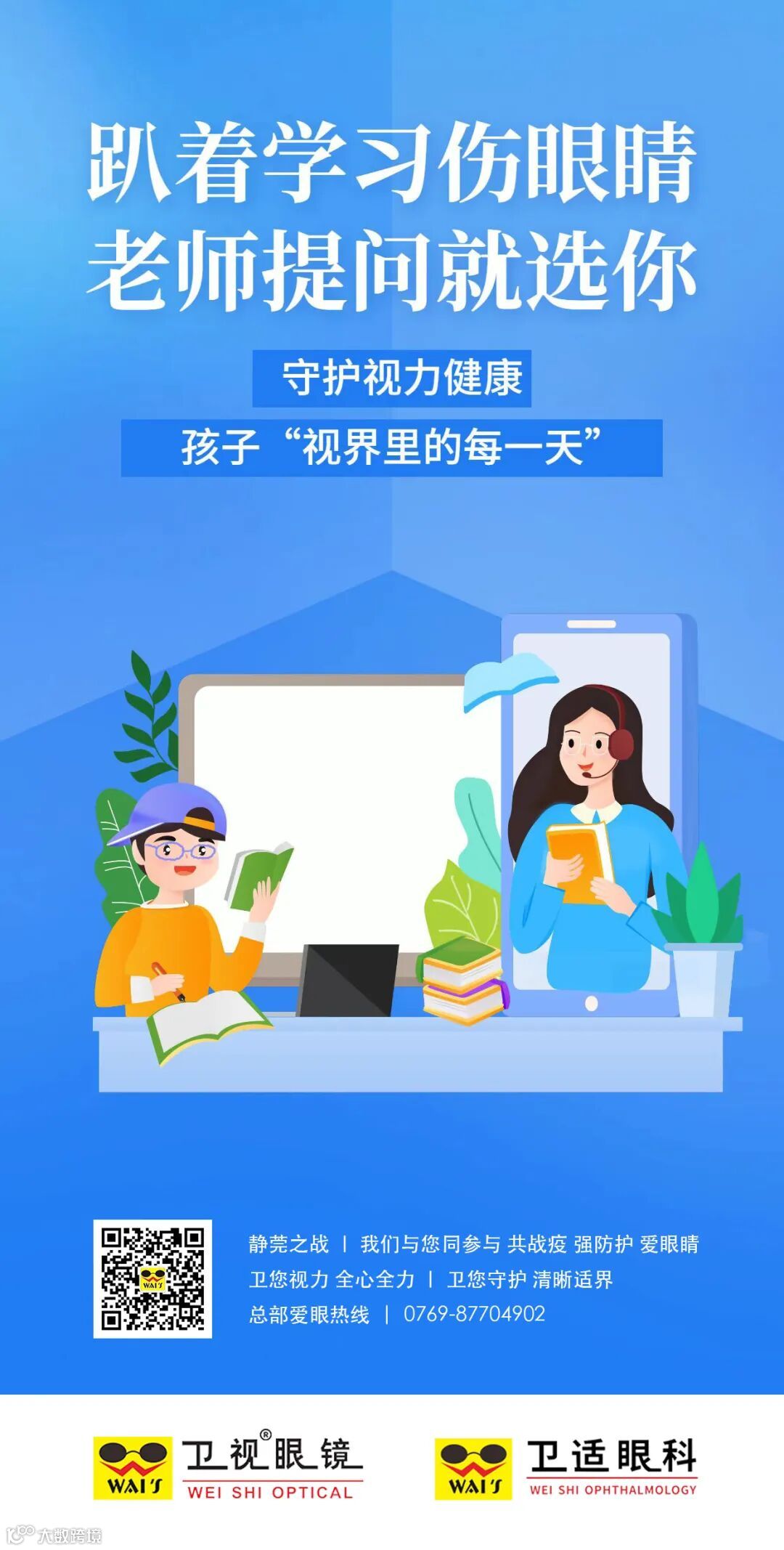 除了每天的网络上课时间外,尽量不要再增加额外的电子产品使用时间。使用电子产品时间不宜过长,避免出现视疲劳,科学用眼。