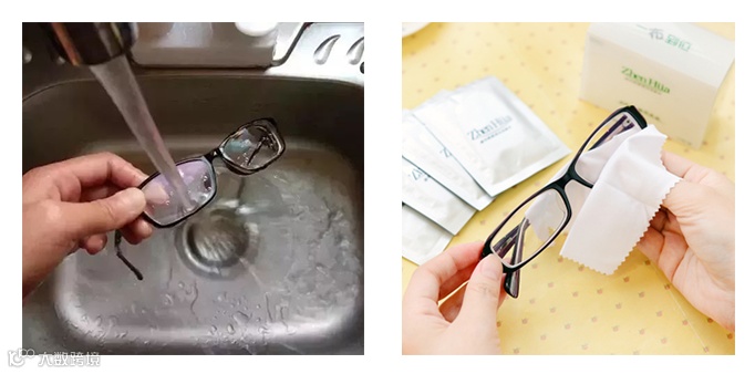 冲洗干净后拿出眼镜用镜布吸干水分,注意,是吸干哦!