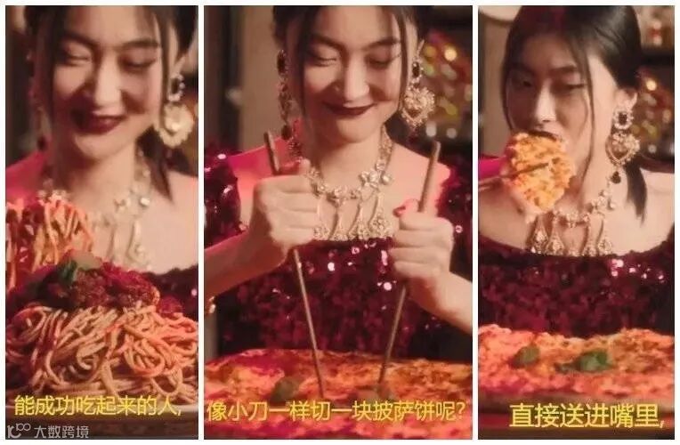 事件起因是因为D&G日前在社交媒体上发布几条广告,这些将中国传统文化与意大利经典饮食相结合的广告宣传片,标题为“起筷吃饭”。其中的模特展示了如何使用筷子吃Pizza、意大利式甜卷等物。但广告中筷子被称为“小棍子形状的餐具”。同时,片中旁白所用的“中式发音”、傲慢的语气以及模特用筷子的奇怪姿势,均被质疑存在歧视中国传统文化的嫌疑。