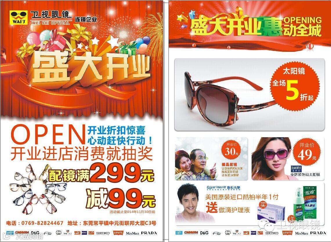 卫视眼镜将不断拓展分店网络,为更多新老顾客服务!开业期间有多重优惠活动,更有抽奖噢!