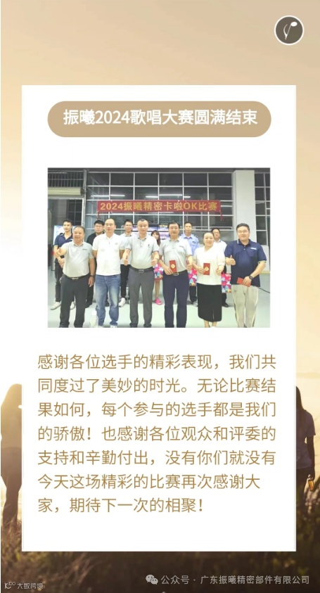 导读:振曦精密2024员工歌唱大赛圆满落幕