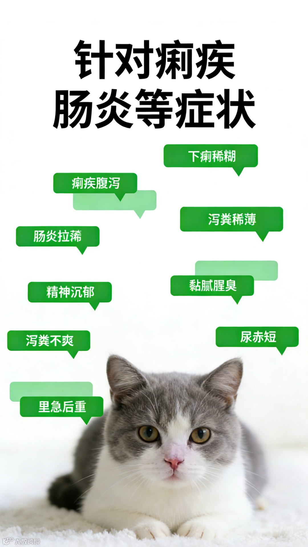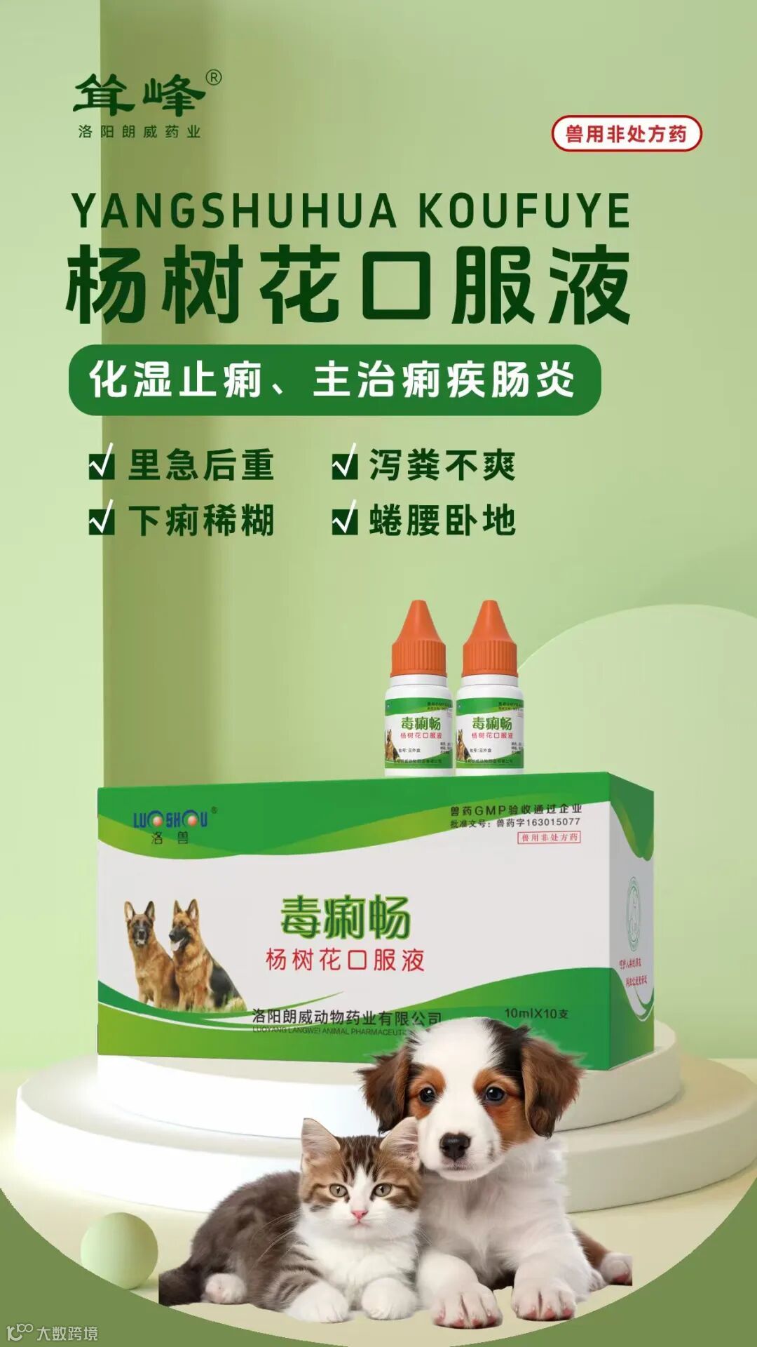 作用与用途:用于治疗犬猫痢疾、肠炎、呕吐、腹泻、伤寒、犬细小病毒、犬瘟热症状。