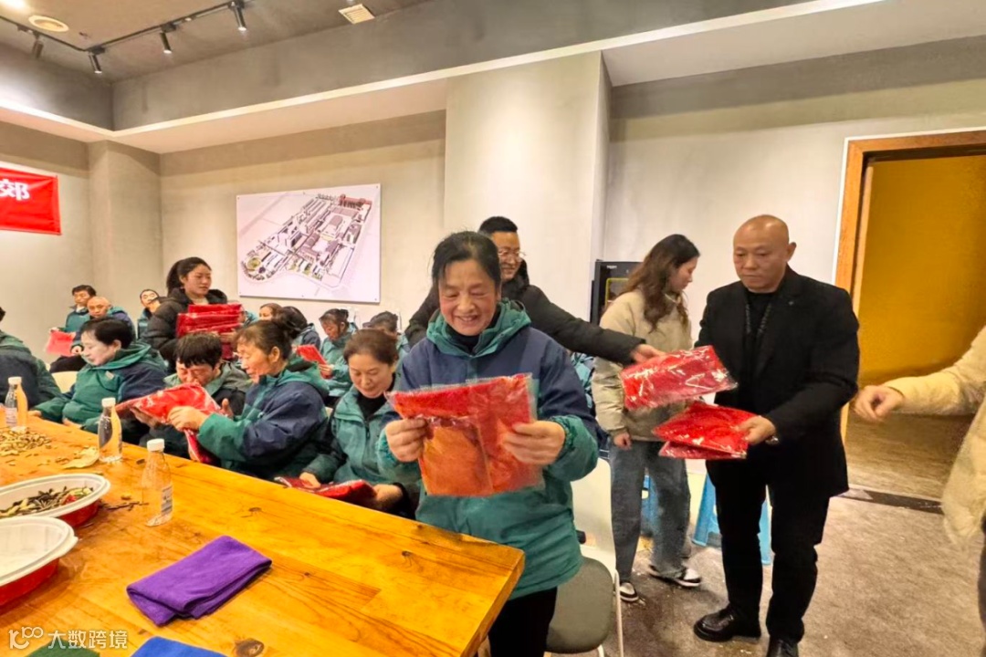 活动尾声,总经办领导亲自将一份份承载着公司关怀的围巾、手套等慰问品逐一发到员工上手,让冬日的暖意浸润每位员工心田。随后,全体人员合影定格这一温馨瞬间,将同行的情谊永久留存。随后,公司精心准备聚餐,大家围坐畅谈,在推杯换盏间舒缓辛劳,在欢声笑语中凝聚共识,让团队情谊在温馨氛围中愈发深厚。