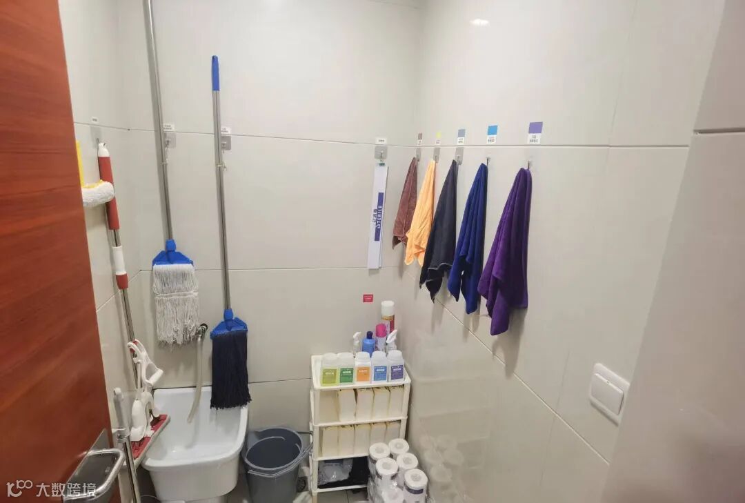 服务间内清洁工具分类存放、药剂标签清晰,实现“零误用”;毛巾按功能颜色区分,杜绝交叉污染。