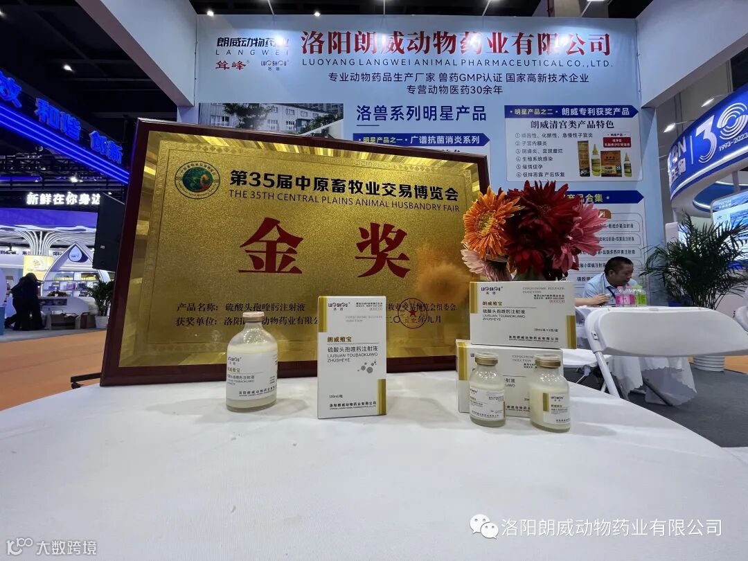 朗威明星产品硫酸头孢朗威殖宝硫酸头孢喹肟注射液荣获第35届中原畜牧业交易博览会金奖!