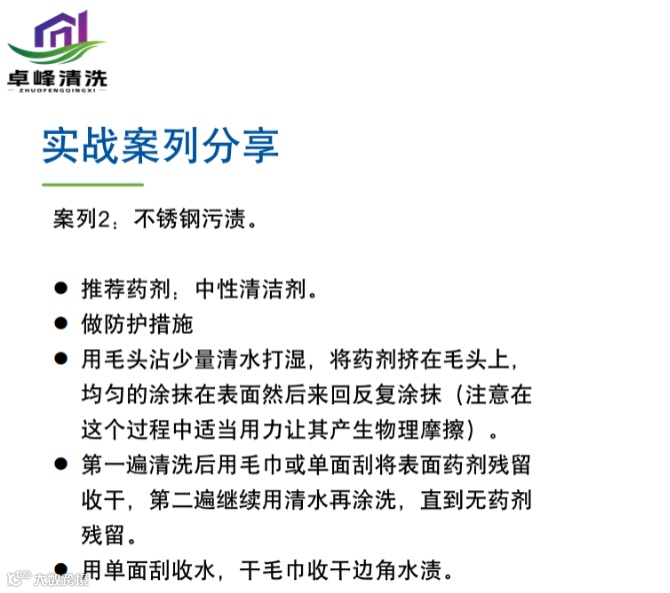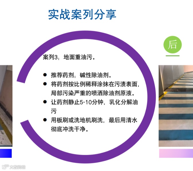 我们深度剖析了玻璃雨棚、不锈钢、重油污地面这三类高频且棘手的案例,将科学原理直接转化为“第一步做什么,第二步用什么”的标准化动作,让大家不仅听懂理论,更能直接掌握一套应对复杂现场、解决实际问题的可靠工具箱。