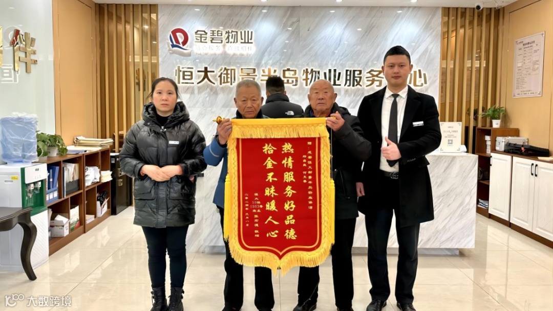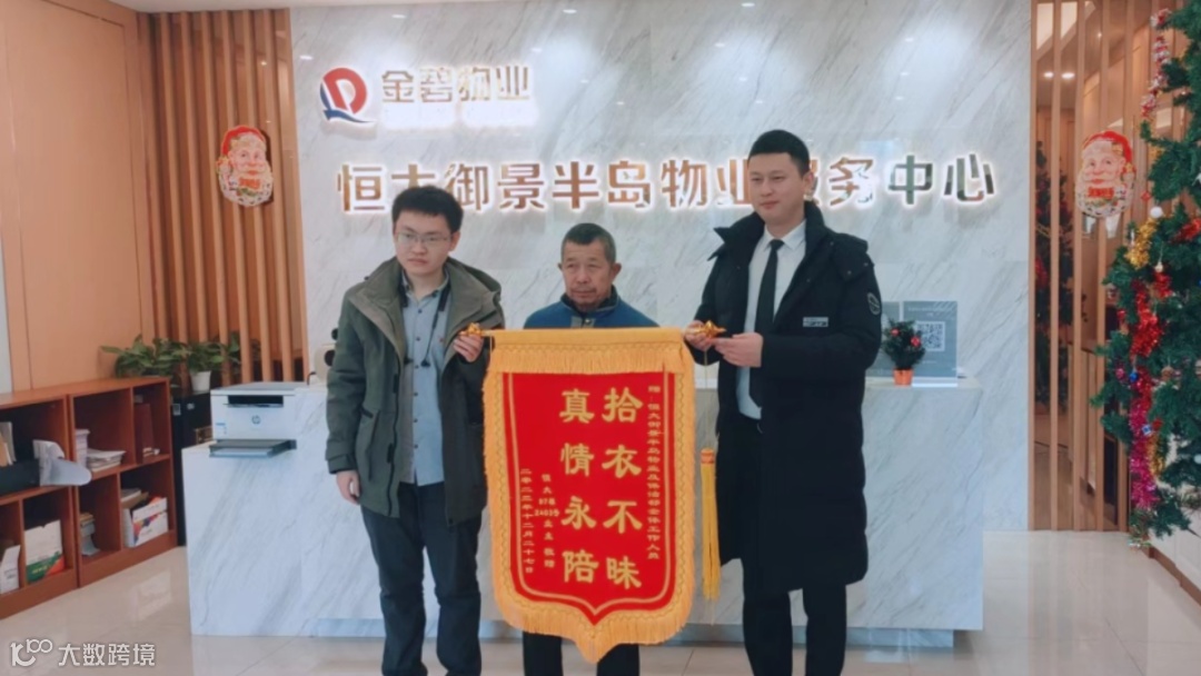 随后将物品遗失信息发送业主群与朋友圈,16时许业主到物业前台核实并领取遗失物品,为表彰员工拾金不昧的行为,业主送上锦旗以表感谢。