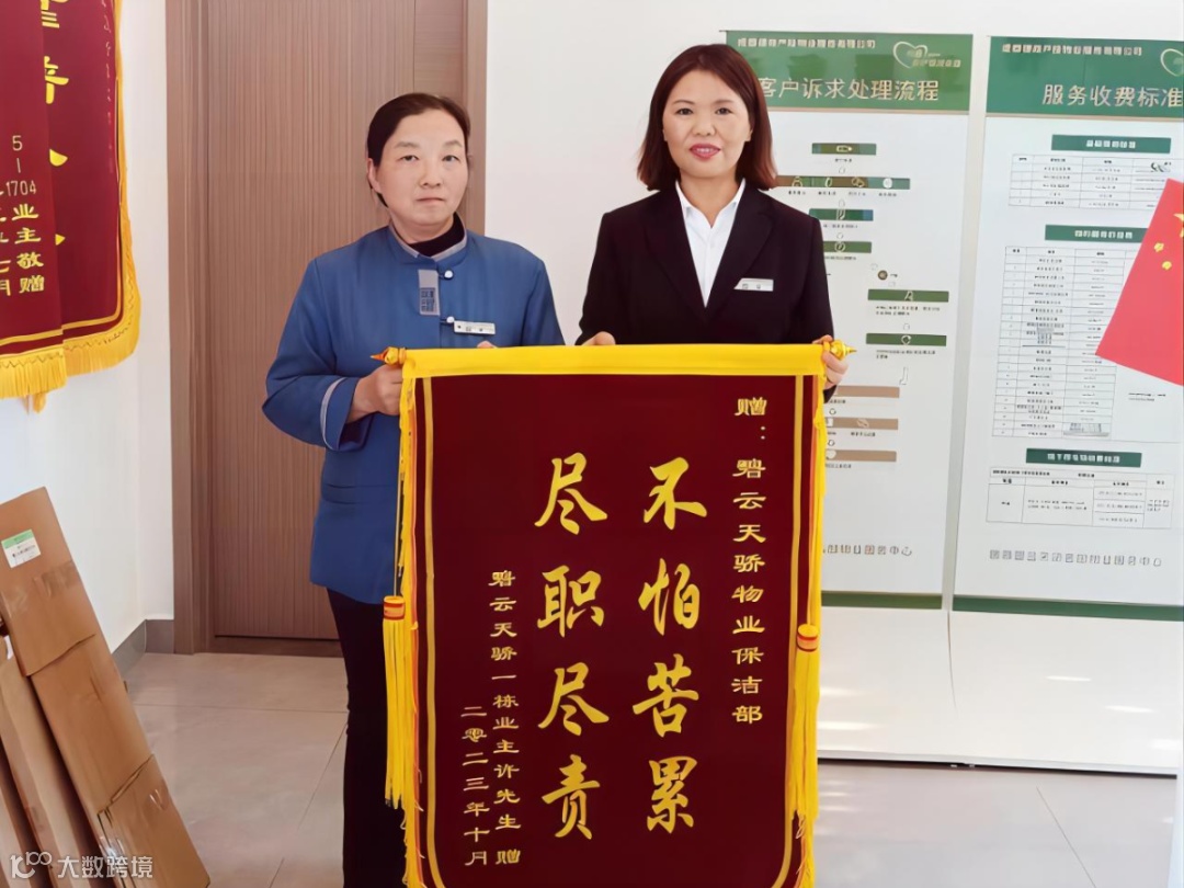 业主们对张玉芳的辛勤付出表示感激,特地送上一面锦旗,以表达对她的敬意和感谢。这面锦旗不仅是对张玉芳工作的肯定,更是对恒大上林苑项目保洁工作的认可。