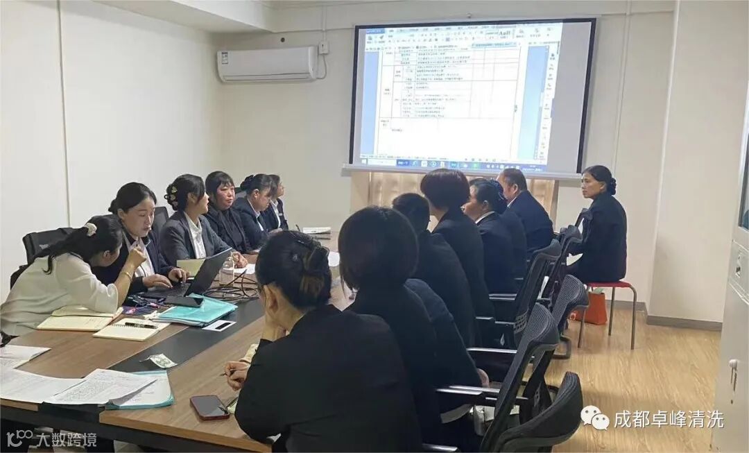2023年4月11日上午9时整,成都卓峰清洗服务有限公司日保部召开2023年第一季度工作总结会议。本次会议由品质部王经理主持,日保部门全体经理、主管参加。主要总结各项目第一季度日常保洁工作中存在的问题,并对第二季度工作重点工作进行了合理规划。