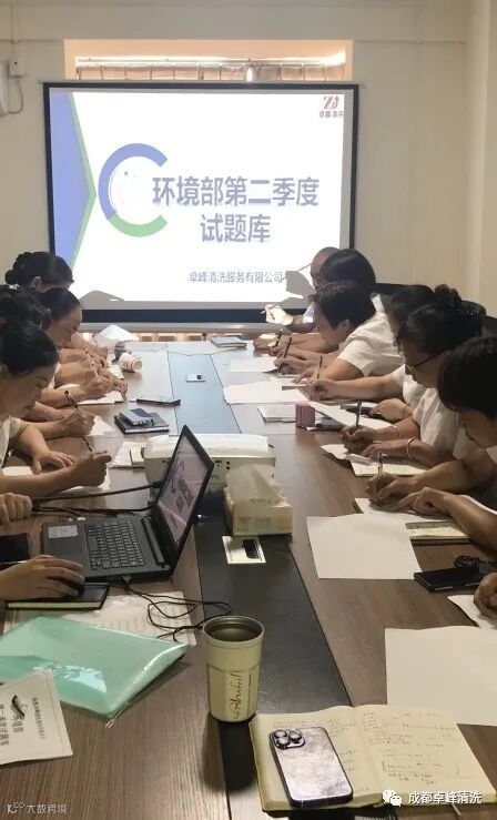 为保证落实各项目主管的管理专业性,会上如期举行季度考试。试卷涵盖日常保洁作业规范、药剂使用、日常作业方法、工具使用等内容。