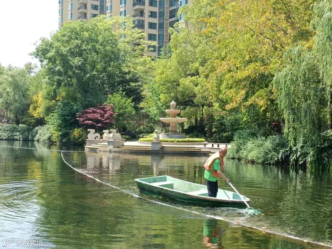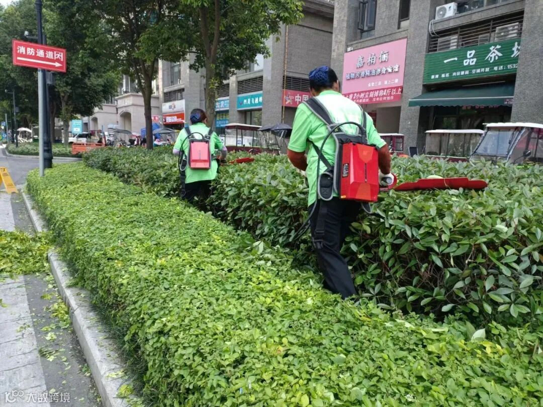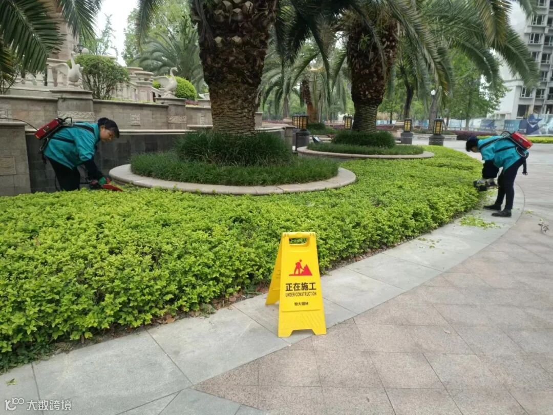绿色让人舒心,植物让人身心安宁,小区中随处可见的草木绿植也需要专业人员进行养护,每日对植物浇水、除虫,对生病枯萎的植物进行治疗、移除,对高大的乔木进行修剪,对池塘落叶进行打捞。绿化员工用勤劳的双手为业主送去一片绿色的祝福和春的希望。