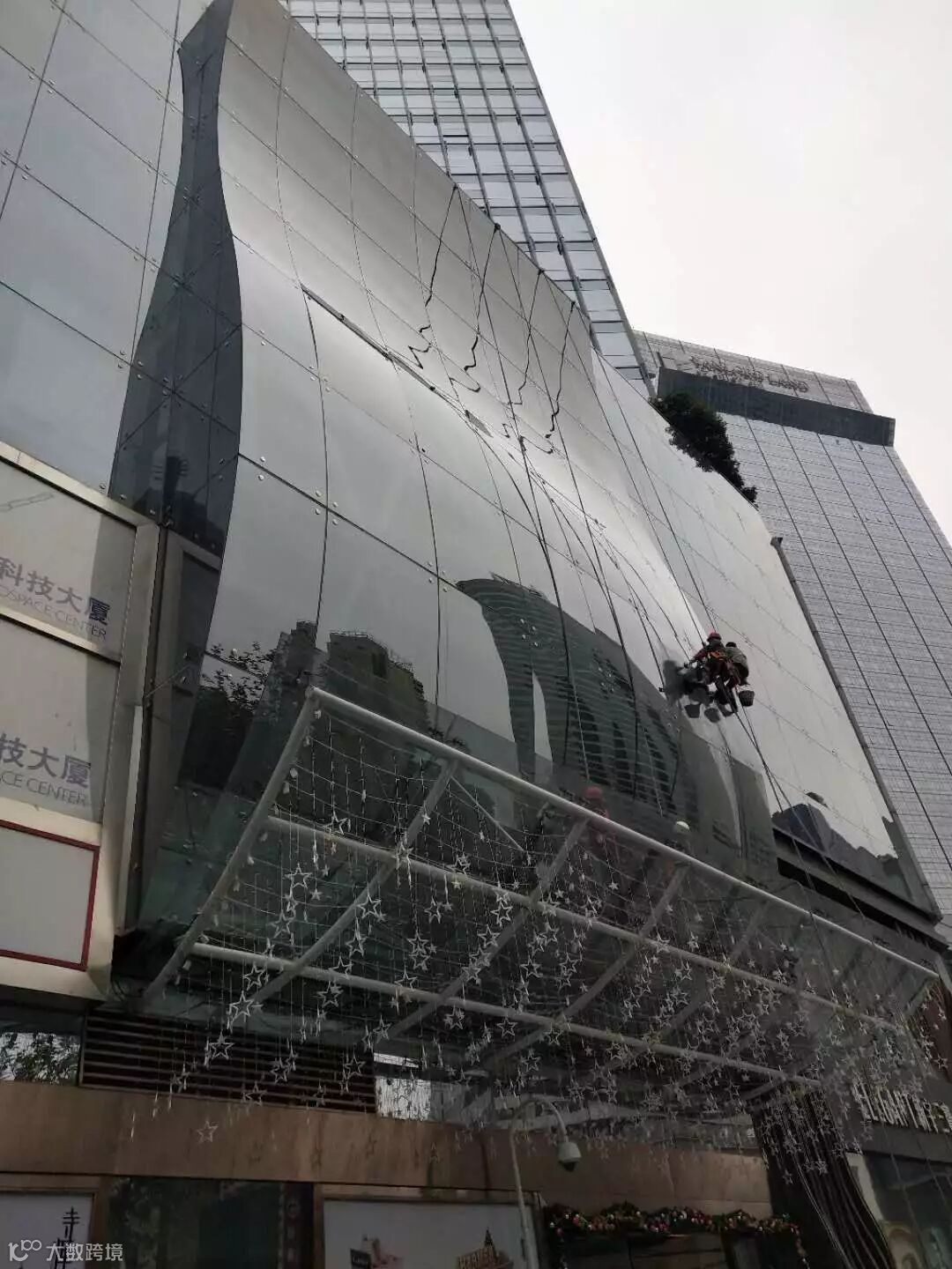银石广场写字楼位于成都市锦江区春熙路黄金地段,物业类别:标准写字楼(甲级),总楼层地上38层、地下4层。该写字楼外墙为钢网结构,这给清洁工程加大了不少难度,我们的“蜘蛛人”对每一寸区域都进行了细致的清洗,相信他们抬头时,一定是面带微笑的看着自己的劳动成果。