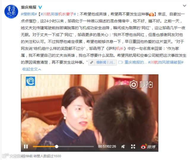 而对于刘传建的妻子邹函来说,丈夫驾驶前挡玻璃脱落的飞机成功安全迫降,被刘传建的新闻刷了屏,妻子邹函才得知丈夫面临的是“世界级”的险情。