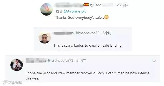 还有国外网友大赞机组人员“干得漂亮”,“机组人员应该获得相应荣誉”。英国网友也联想到那场英国航空的相似事件,称几位飞行员奋力救急的举动“值得敬仰”。