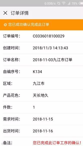 1. 每扫描确认一次订单上的二维码,确认成功后都会有微信消息通知。消息上有详细的时间及订单工序,确认人的信息。