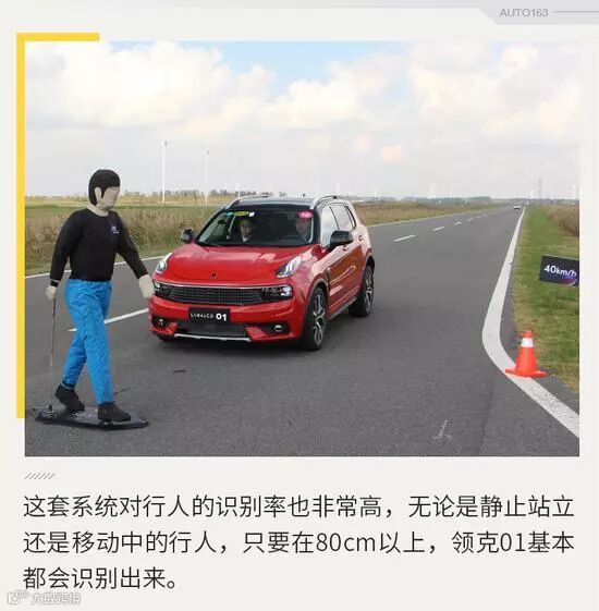 当这套AEB系统发现存在碰撞预警风险时可发出预警,若驾驶员没有做出反应则会自动刹车,达到避免事故或降低损伤程度的作用。从当场实验可以看出,当前方障碍物为静止状态时,领克01以40km/h的速度行驶时可完全避免碰撞,事实上根据厂商的宣传可以看出,只要是速度差在40km/h以内均可完全避免与前车发生碰撞,也就是说,当前车以60km/h行驶,领克01以100km/h以内的速度行驶时,基本上可以完全避免碰撞。