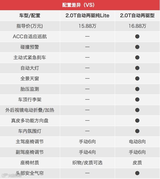 ● 基础车型配置分析:纯Lite(最低配)官方指导价格:15.88万