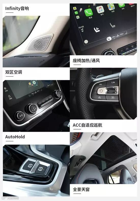 在配置方面,领克01劲 Pro 车型配备了10.25寸全液晶仪表(有三种主题)、 10.2 英寸的中控液晶屏幕、双区空调、无线充电、前排座椅加热 / 通风、全景天窗、 Infinity 音响等配置。
